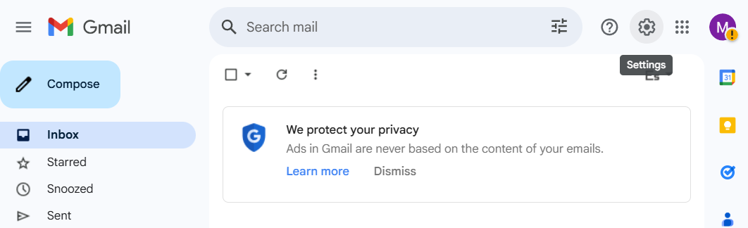 Crear una etiqueta: En la versión web de Gmail, dirÃgete al Ãcono de engranaje (Configuración) en la parte superior derecha de la pantalla.