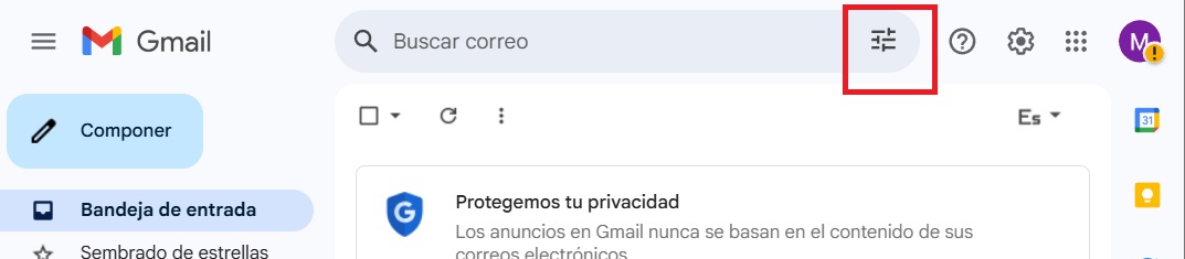 Acceder a la Búsqueda Avanzada: En la barra de búsqueda de Gmail, haz clic en el Ãcono de los tres deslizadores que se encuentran a la derecha de la barra. Esto abrirá las opciones de búsqueda avanzada, donde podrás personalizar aún más tus criterios de búsqueda.