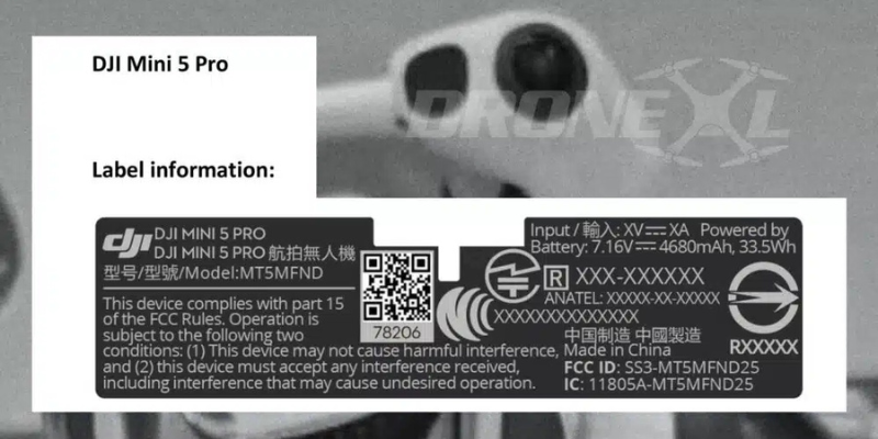 Las especificaciones de transmisión inalámbrica, indican que el Mini 5 Pro podrÃa transmitir vÃdeo a una distancia de hasta 25 kilómetros. El dron operará en frecuencias de 2412 MHz a 2462 MHz y contará con un sistema de carga rápida de 65 W. Se espera que su lanzamiento ocurra en septiembre de este año.