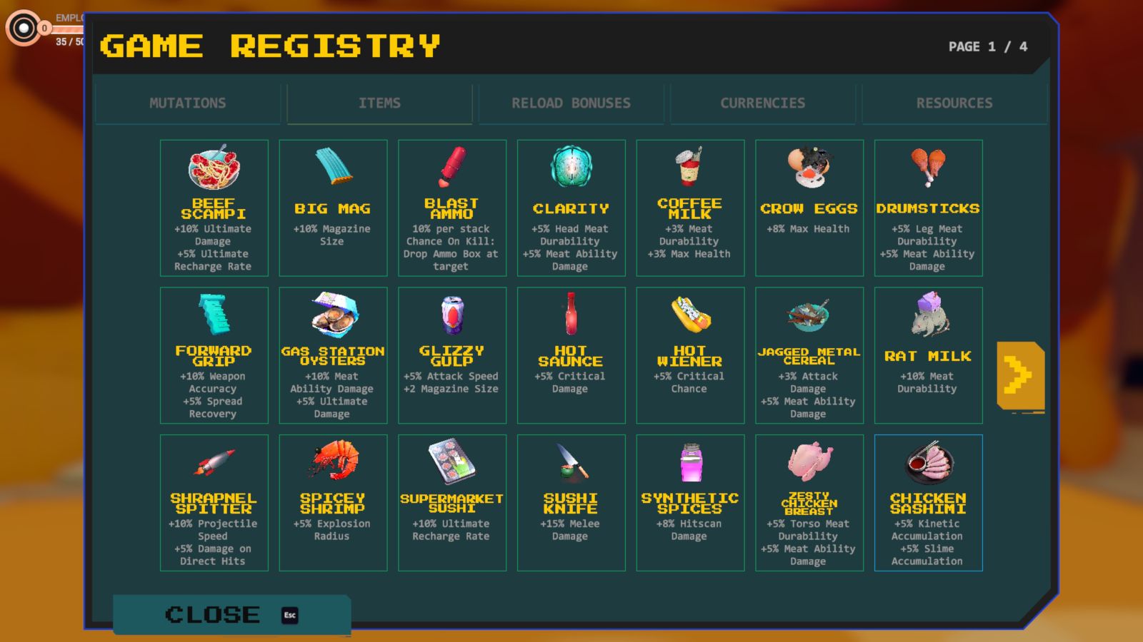 Este shooter alienígena cuenta con elementos de Roguelite, lo que quiere decir que algunos elementos dependen completamente de la suerte. En este caso, creemos que influye más en cuanto a los objetos que puedes obtener al derrotar a los enemigos, pues algunos como la ‘Leche de Rata’ (¿Eh?) te ayudarán a que tu carne esté más blanda y sea resistente… y hay otros que pueden hacer que tu velocidad aumente por un momento, que tengas resistencia a los ataques y demás.
