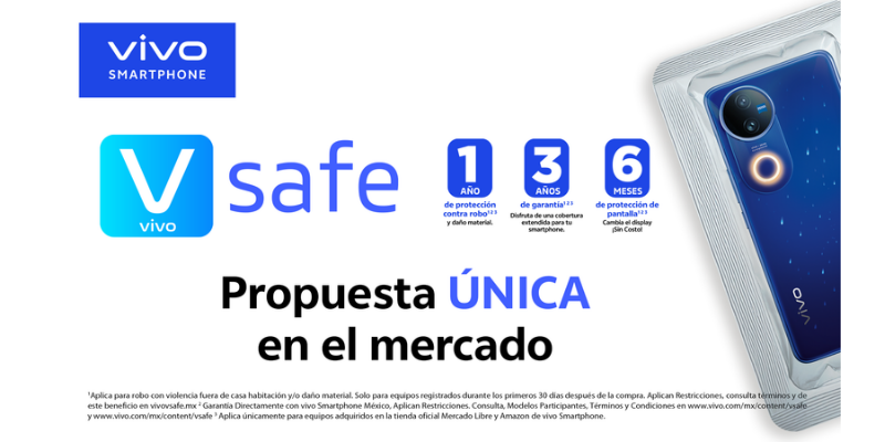 ¿Y si se rompe? ¿Y si me lo roban? Vivo también pensó en eso. Su programa v.safe ofrece hasta tres años de garantÃa extendida y cobertura por robo sin costo extra. Nada mal para un beneficio que no tiene nadie más en el mercado.