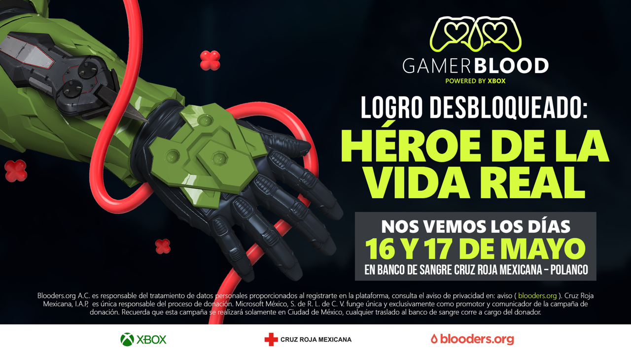Xbox realiza la invitación a su comunidad a través de la campaña Gamer Blood, la cual busca ayudar a más de 300 personas. Esta ayuda se realizará el 16 y 17 de mayo en colaboración de la Cruz Roja Mexicana y Blooders.org.